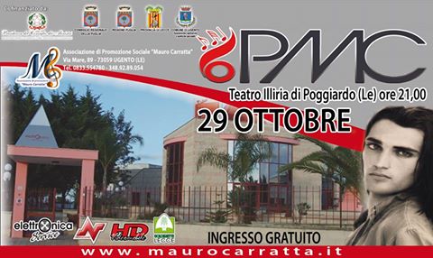 | Si sono chiuse domenica 11 settembre le iscrizioni al PMC16. Come da regolamento i finalisti verranno avvisati dall'organizzazione mezzo email e/o telefonicamente circa l'esito delle selezioni effettuate dai giurati del festival. L’Organizzazione inoltre renderà noti i nomi dei finalisti sul sito web dell'associazione, www.maurocarratta.it e sul sito web del progetto www.ugentocittadellamusica.it entro il 25 settembre 2016. Vi diamo intanto appuntamento al 29 ottobre al teatro Illiria di Poggiardo (Le) per la finale! INGRESSO GRATUITO info www.maurocarratta.it - www.ugentocittadellamusica.it - segreteria@maurocarratta.it |