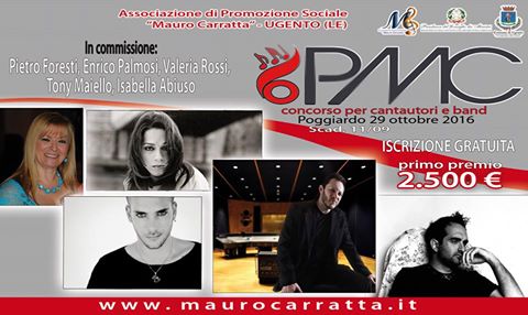 Per la IV° edizione del PMC a giudicare i brani inediti sarà una giuria tecnica formata da artisti, produttori e professionisti del settore: Enrico Palmosi (pianista, arrangiatore e produttore discografico italiano. Spicca tra i nomi prodotti negli anni quello dei Modà e Valerio Scanu), Pietro Foresti (Produttore discografico), Valeria Rossi (cantautrice italiana, tra i brani più famosi si segnala il tormentone “dammi tre parole” – estate 2001), Tony Maiello (cantante italiano, tra l’altro vincitore di San Remo Giovani con il brano “Il linguaggio della resa”). |
